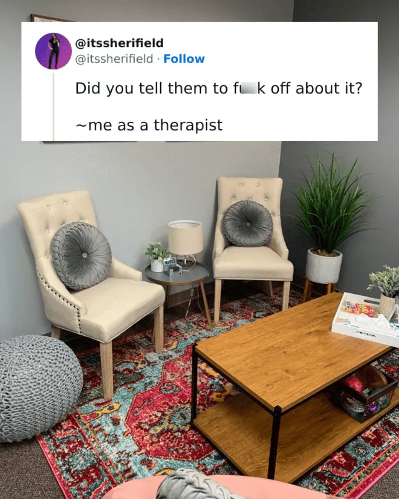 For those without this specialized training, resorting to an aggressively sarcastic approach to therapy might not be the most effective solution. We can see how this approach might not always be well-received.